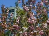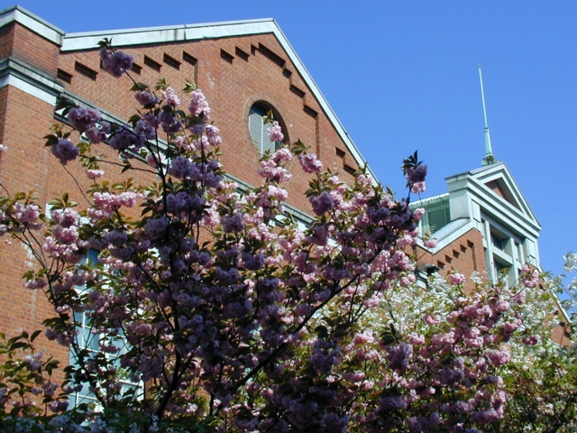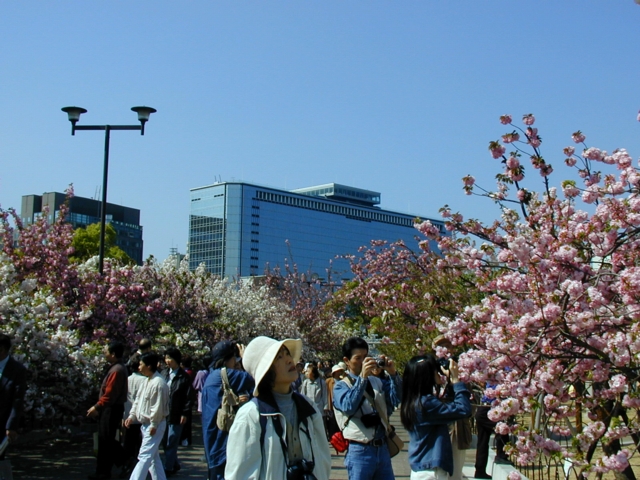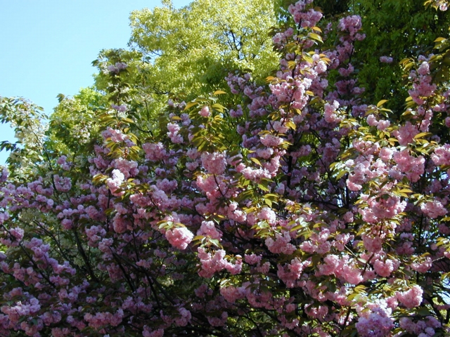 心配していたお天気にも恵まれ、桜が青空に映えてきれいでした(^.^)。 この頃の空というと、晴れていてもかすんでいて、ちっとも青くないのに、この日は珍しく青空でした。 朝9時に行ったので、まだそれほど混雑しておらず、写真を撮るときにも他人に気を遣うゆとりがありました...。