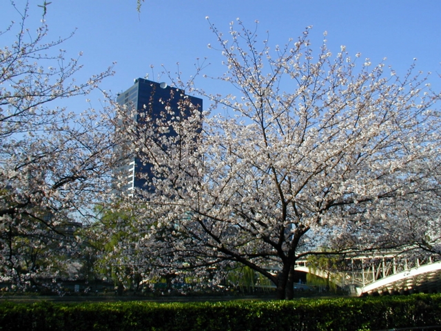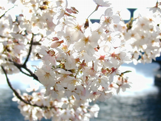 朝7時過ぎに川沿いの公園まで。昨日の夜も会社帰りに寄ってきたけど、すっかり宴会場と化していた。火をたいて肉を焼いたり酒を飲んだりにぎわっていたが、煙にいぶされてなんだか桜がかわいそう・・・(^_^;。
