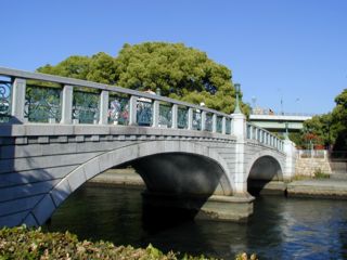 橋の上から見た全景。名前の通り中之島の両側は川。