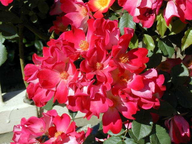 カメラの癖なのか、赤い色が反射すると黄色くなるようだ。赤い花の花びらの先が黄色くなっているのはそのせいと思われる。あと、紫色がちゃんと表現できず、ピンク色になったものも・・・。